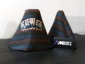 Sourced and supplied by the one and only Matt B from 2M Shiftboots, this extremely limited edition shift knob and handbrake boot set features the iconic M Pattern and is topped off by an embroidered KUWTB logo sewn directly into the fabric!